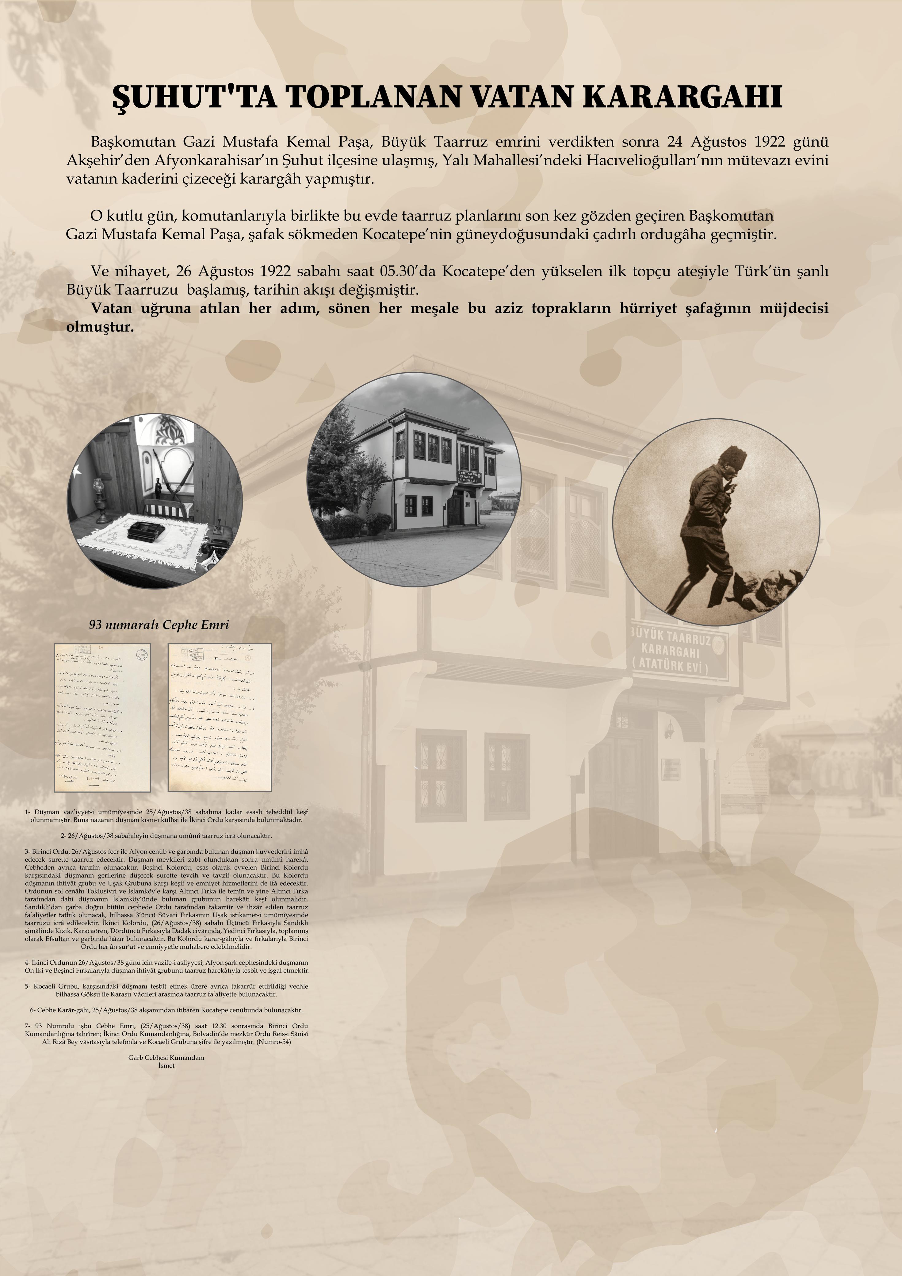 Gazi Mustafa Kemal Paşa'nın Büyük Taarruz hazırlıklarını yönettiği Şuhut'taki gizli karargah ve stratejik planlamalar