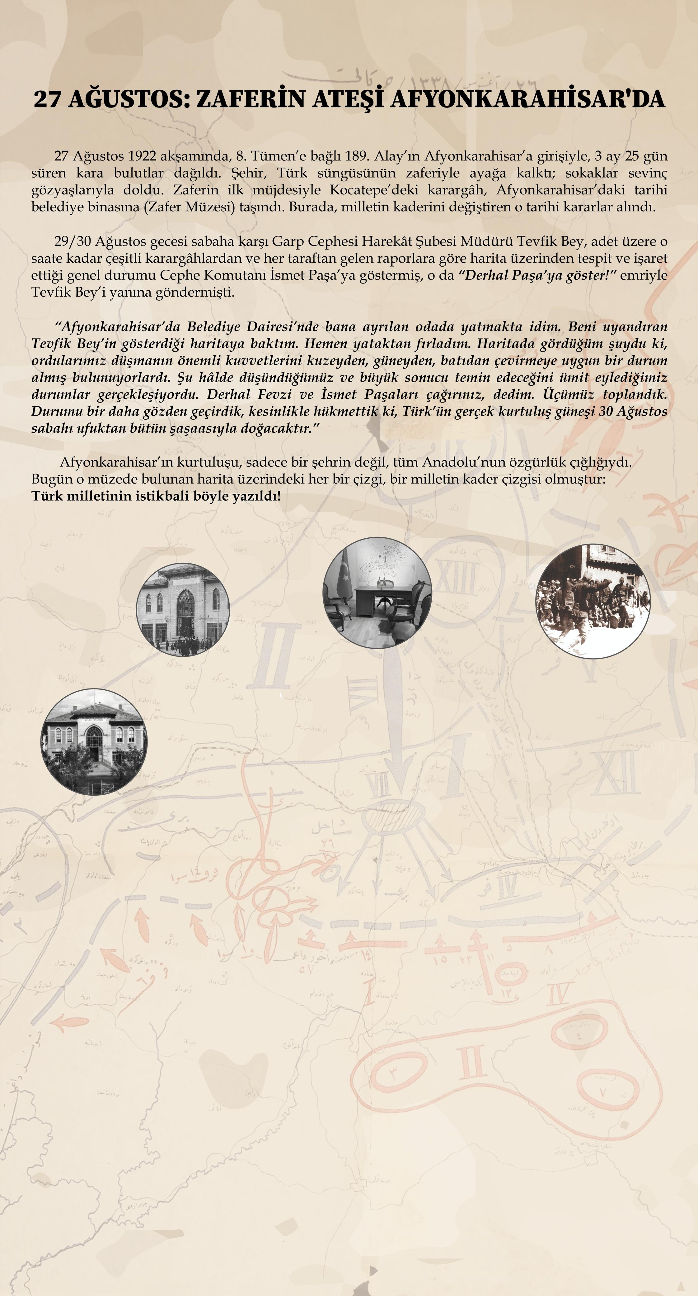 Büyük Taarruz'un ilk gününde Afyonkarahisar'ın düşman işgalinden kurtuluşu ve zafer ateşinin yakılışı